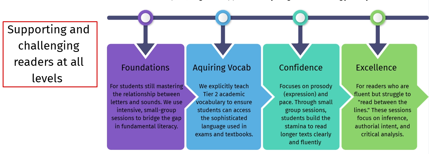 We believe that every student has the right to become a proficient, confident reader. To ensure no child is left behind, we use a data-driven model to identify specific barriers and provide high-impact, targeted support at every stage of the reading journey.