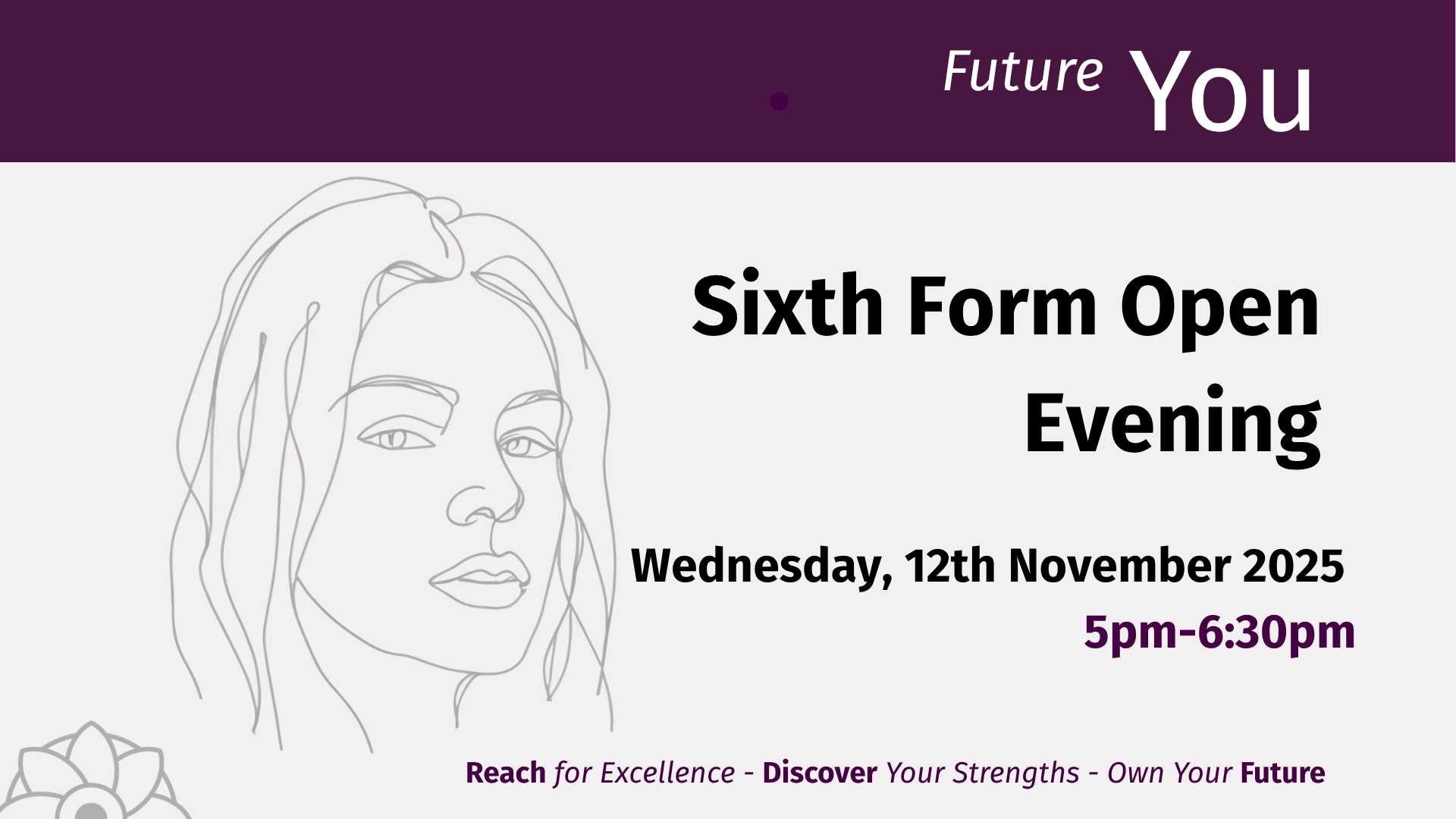 Sixth Form Open Evening is on Wednesday, 12th November 2025 from 5pm-6:30pm.